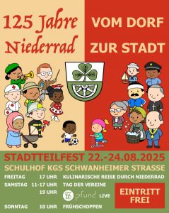 Ganz Niederrad feiert – vom 22.8.-24.8.auf dem Schulhof der KGS Schwanheimerstraße!